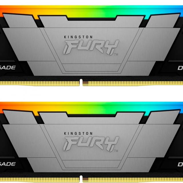16GB (Kit of 2*8GB) DDR4-3200 Kingston FURY(R) Renegade DDR4 RGB, PC25600, CL16, 1Rx8, 1.35V, Symmetric Black/Silver Large heat spreader, Dynamic RGB effects featuring Kingston FURY Infrared Sync technology, Intel XMP Ready (Extreme Memory Profiles)