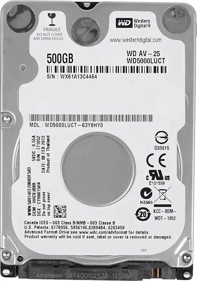 2.5” HDD 500GB Western Digital WD5000LUCT, AV-25/ 5400rpm/ 16MB/ SATAII