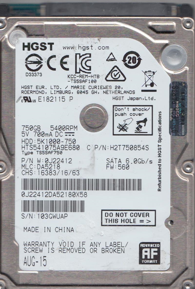 2.5" HDD Hitachi Travelstar 5K1000 / 750GB / 5400rpm / 8MB