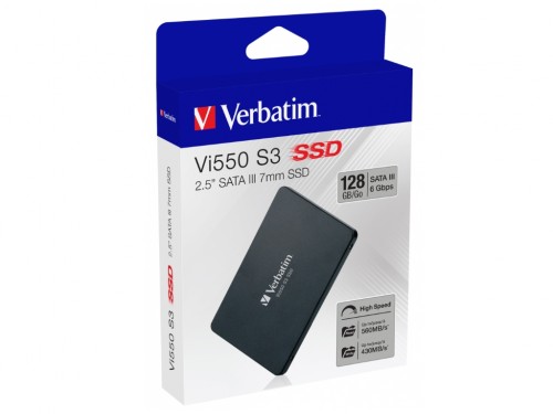 2.5" SSD 128GB Verbatim VI550 S3, SATAIII, Sequential Reads: 550 MB/s, Sequential Writes: 430 MB/s, Maximum Random 4k: Read: 61,000 IOPS / Write: 81,000 IOPS, Thickness- 7mm, Controller Phison PS3111, 3D NAND TLC