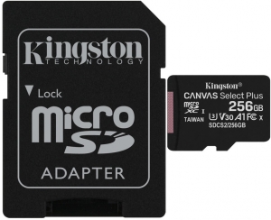 256GB Kingston microSD Class10 UHS-I U1 V10 A1 + SD adapter Canvas Select Plus, Up to: 100MB/s
