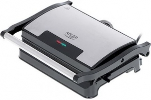 Электрогриль Adler AD 3052Электрический гриль Adler AD 3052 - с максимальной мощностью 1200 Вт дает возможность приготовить широкий ассортимент горячих блюд — от поджаренных бургеров, стейков, свиной шеи, курицы и другого мяса до овощей и сыра на гриле.Варочные панели защищены тефлоновым покрытием, благодаря которому посуда не пригорает, а последующее мытье занимает буквально мгновение. Кроме того, покрытие позволяет жарить на гриле без добавления жира, а отверстие для слива жира делает блюда более полезными. Благодаря специальной шарнирной системе, гриль справится как с тонкими, так и с толстыми кусками мяса, а отверстие для слива, удаления лишнего жира не оставит равнодушными приверженцев здорового питания.Корпус выполнен из пластика и нержавеющей стали. Ручка удобная. Вы можете не только готовить, но и разогревать ваши блюда. Также, есть индикатор работы и готовности продукта. Внутренние пластины выполнены из литого алюминия, покрыты антипригарным покрытием, ребристые. Пластины не съемные, но это не затруднит процесс чистки. Есть поддон для сбора жира, который легко удаляется. Ножки гриля прорезиненные, удобно станут на любой поверхности. Гриль не габаритный, транспортабельный.Характеристики:Номинальная мощность: 700 Вт.Максимальная мощность: 1200 Вт.Размер нагревательной плиты 23 х 14,5 см.Регулируемый наклон пластины.Вертикальное хранение.Вес: 1,29 кг.Размеры устройства 27 х 22 х 8,5 см.