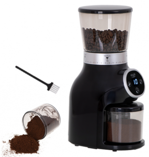 Электрическая кофемолка с коническими жерновами мощностью 300 Вт для ароматного свежемолотого кофе.