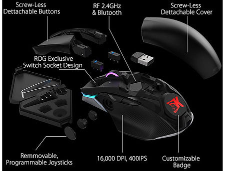 ASUS ROG Chakram RGB Wireless Gaming Mouse, Qi charging, programmable joystick, wired/2.4GHz/Bluetooth, 16000 dpi sensor, Aura Sync lighting