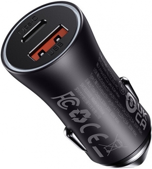 Baseus Car Charger Golden Contactor Max USB+Type-C 60w, Grey