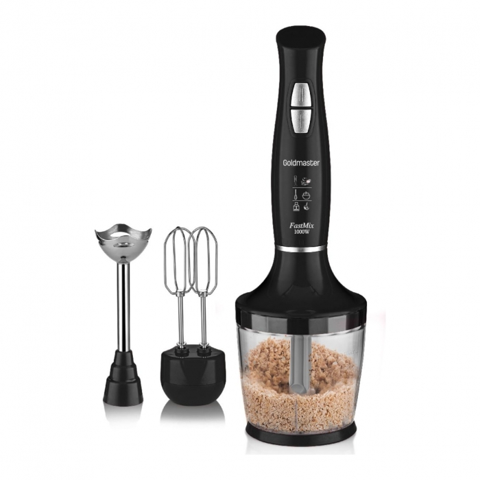 Насадки в комплекте: блендер, венчик для взбития, измельчитель