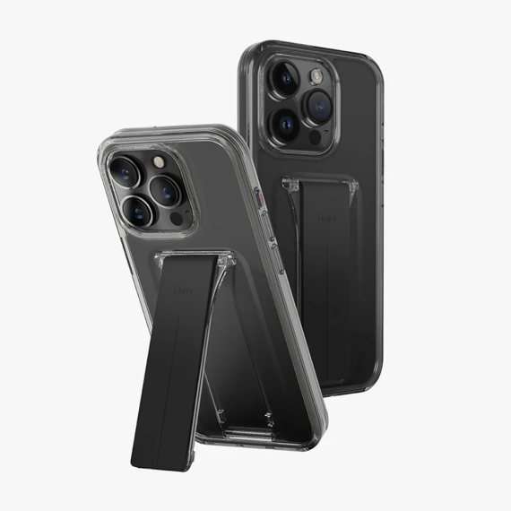 Чехол Uniq для iPhone 15 Pro Max Heldro Mount с подставкой, дым
