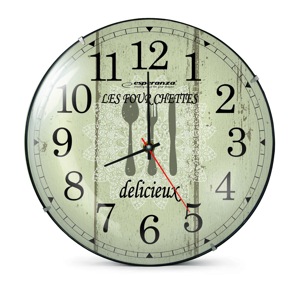 Clock Wall Esperanza PARIS EHC018P White, 30 cm, (text: Les Fourchettes), plastic frame, Quiet movement, hook for easy installation, Power: 1x AA ba