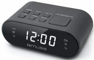 Dual Alarm Clock Radio Muse M-10 BLACK, 0.6 inch white LED Display, Dimmer (High /Low/Off), PLL Radio with 20 FM preset stations, Wake up by Radio or