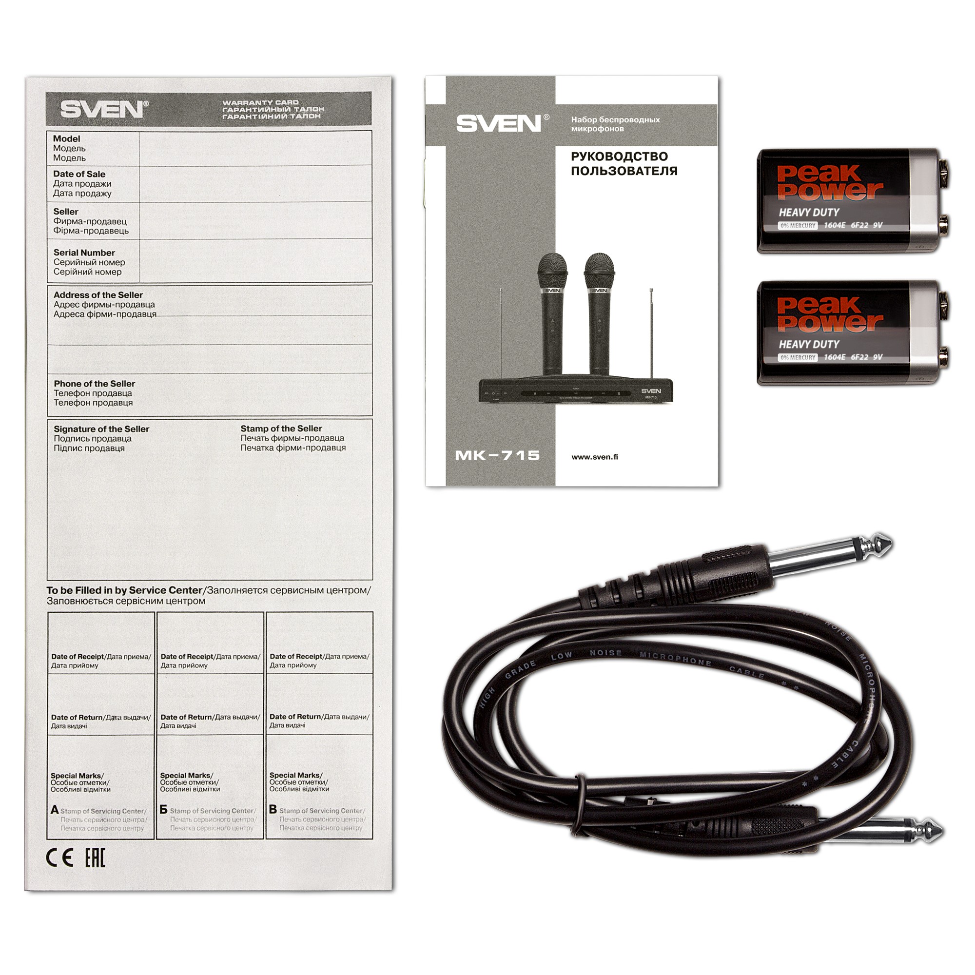 Два беспроводных микрофона для караоке SVEN MK-715 / Wireless / Black
