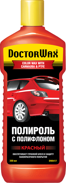 Полироль Doctor Wax цветной с полифлоном красный (DW8417) - цветообогащенный полироль, содержащий пигменты основного тона краски, позволяют освежить цвет и устранить мелкие дефекты лакокрасочного покрытия. При обработке пигменты «втираются» в микротрещины поверхности, заполняют мелкие риски, сколы и царапины. Содержит Полифлон* (Polyflon) - полимерная нанокомпозиция на основе PTFE) и натуральный воск пальмы карнауба.Особенности и преимущества:Гамма цветных полиролей DoctorWax охватывает самые популярные автомобильные краски.Легкий в использовании и экономный препарат.Обеспечивает сверхпрочное защитное покрытие, выдерживающее многочисленные мойки.Подходит для любых типов краски.Особенно эффективен для покрытий с лаковым слоем и «металликов».Применение:Вымойте автомобиль.Используйте средство на прохладных поверхностях.Энергично встряхните флакон.Проводите обработку участками: половина капота, крыло, дверь и т.д.Мягкой хлопковой тканью или аппликатором круговыми движениями нанесите состав на кузов и дайте ему подсохнуть до образования матового налета.Отполируйте мягкой хлопковой тканью до получения равномерного блеска.Может использоваться для ручной и механической обработки.Для обеспечения наилучшего эффекта цветные полироли с полифлоном следует наносить в тени на прохладный кузов.