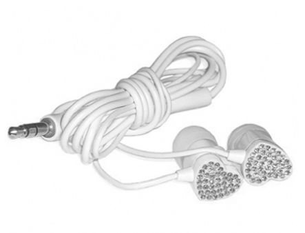 E11001 ELECOM HEART "Gem Drops" Jewel Type Stereo Headphones - (White, Crystal clear), 20 Hz to 20 kHz, 16 Ohm, 100 dB/1 mW (mini casti/мини наушники)
