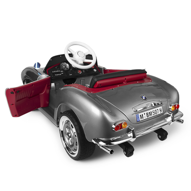 Электромобиль BMW 507 Retro - стильный, лицензированный, комфортный, имеет оригинальный ретро-дизайн и с первого взгляда станет мечтой вашего ребенка. Модель чрезвычайно похожа на настоящий автомобиль, только в миниатюрном варианте. Автомобиль рассчитан на детей от 3 лет и отвечает всем требованиям безопасности, практичен, имеет обширное оснащение, имеет ремни, замки для боковых дверей и пульт дистанционного управления, благодаря которому родитель будет иметь полный контроль над транспортным средством.Пульт дистанционного управления позволяет вести машину вперед, назад, поворачивать, корректировать походку ребенка и, при необходимости, немедленно останавливать ее. Благодаря небольшому размеру и безопасности модель можно использовать и детям младшего возраста (1-3 года), но только под пристальным наблюдением опекуна!BMW 507 Retro оснащен уникальными светодиодными фонарями спереди и сзади. Преимуществом автомобиля является медленный старт. Транспортное средство движется очень медленно, поэтому ваш ребенок не испугается при трогании с места. Ребенок будет использовать автомобиль до тех пор, пока его вес не достигнет 30 кг или пока ребенок не станет достаточно взрослым, чтобы перейти на более крупную модель. Представленная модель изготовлена из первоклассного прочного пластика. Лицензия BMW гарантирует высокое качество и воспроизведение.