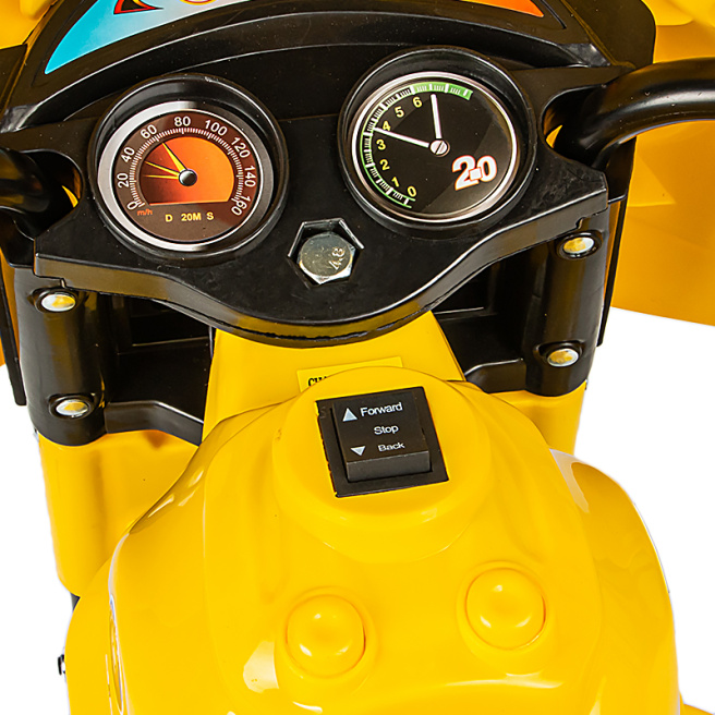Детский электромотоцикл подарит ребёнку возможность почувствовать себя настоящим водителем собственного автомобиля и подарит яркие эмоции первого опыта вождения!Такой транспорт долго будет дарить малышу удовольствие от поездок, ведь реалистичный дизайн, проработанный до мелочей, превратит игру в жизнь! На мотоцикле возможно движение впёред, назад, вправо, влево. Машина заводится одним нажатием кнопки и ею легко управлять!
