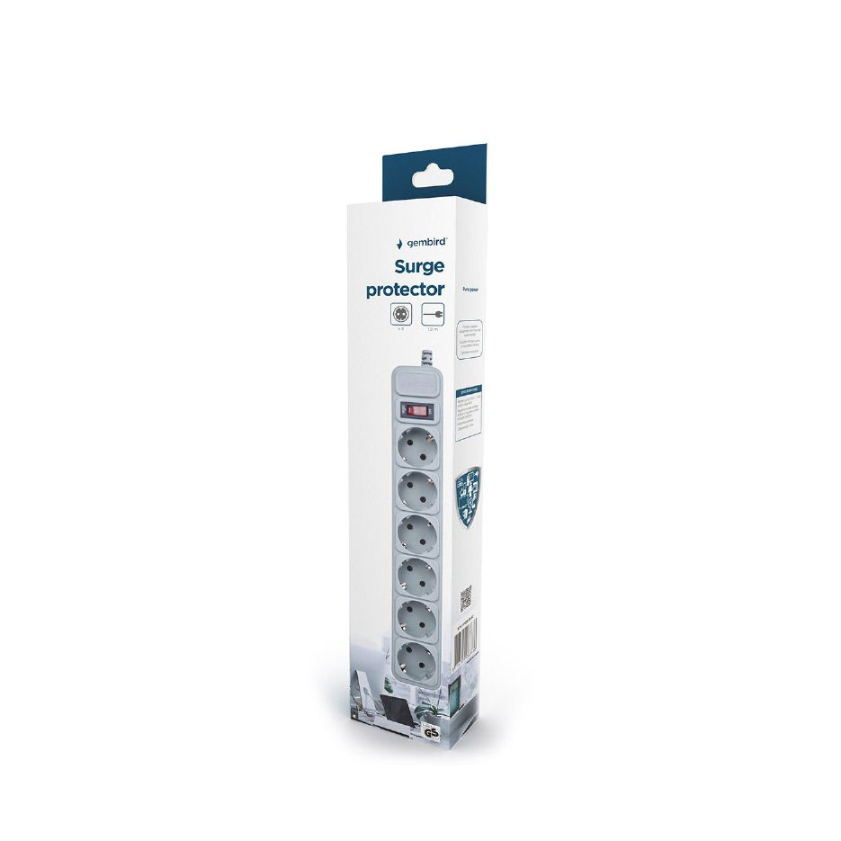Фильтр импульсных помех Gembird Surge Protector SPG3-B-6C, 5 Sockets, 1.8m, up to 250V AC, 16 A, safety class IP20, Grey