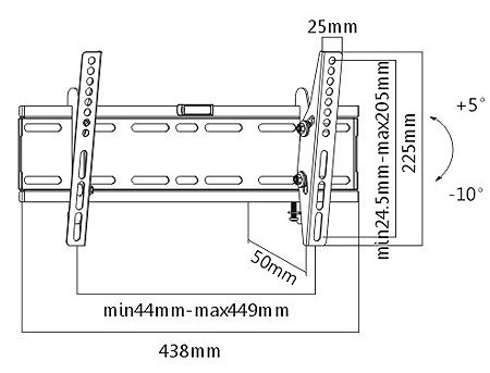 Flat Panel Wall Support Brateck LP41-24T for TV screen size 32" - 55", Tilt from +5° to -10°, VESA 100x100, 200x100, 200x200, 400x200, 50Kg, Bubble Level