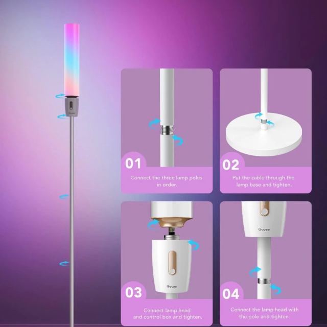 Floor Lamp GOVEE RGBICW Cylinder Floor Lamp, Wi-Fi + BT, Multicolor + Extra White LEDs, Multidirectional Lighting, 360° lighting, 2200k-6500k, 1500 lumens, No Hub Required, 64 Preset Scene Modes, Schedule & Timer Functions, App, Control Box, Voice Contro