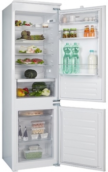 Встраиваемый холодильник Franke FCB 320 NE F ( 118.0606.721 )Современный встраиваемый холодильник с морозильной камерой, позволяющий оптимально использовать внутреннее пространство при сохранении свежести и питательных свойств продуктов.Общий объем, (л) 273Объем холодильной камеры, (л) 194Объем морозильной камеры, (л) 79Тип управления электронноеМорозильное отделение нижнееКласс энергопотребления А+Потребление электроэнергии, (кВт/год) 233Уровень шума, (дБ) 35Климатический класс SN, TЗона свежести нетМорозильная камераКоличество секций 3Мощность заморозки, (кг/cутки) 3.5Холодильное отделениеВнутреннее оснащение 4 полкиКоличество ящиков для овощей 1Материал полок-разделителей ударопрочное стеклоФизические характеристикиВысота, (см) 177Ширина, (см) 54Глубина, (см) 54.5Цвет белыйФункции и особенностиОсобенности конструкции Скользящие направляющие. Перенавешиваемые двери. Светодиодное освещение (LED)Функции Система охлаждения статическая FrostlessРазмеры для встраиванияВысота, (см) 177.6Ширина, (см) 56Глубина, (см) 55