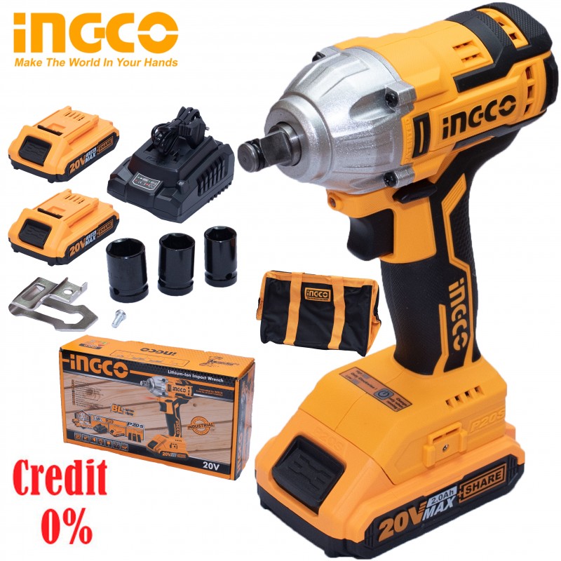 Гайковёрт аккумуляторный ударный, INGCO CIWLI2001 Li-Ion 20V/2*2A