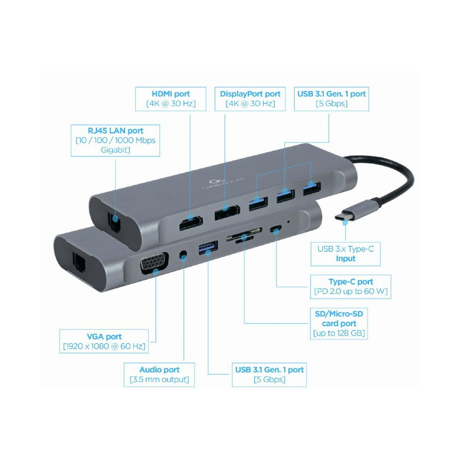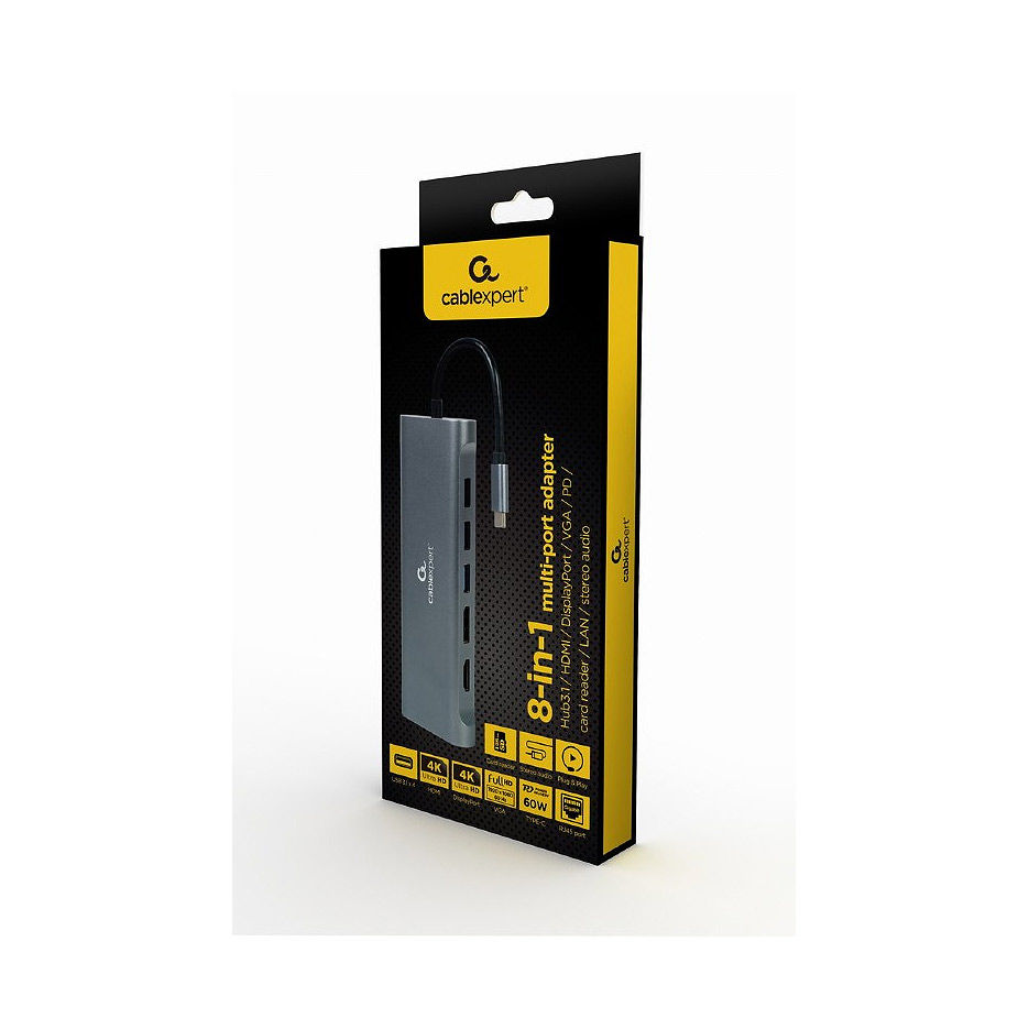 Gembird A-CM-COMBO8-01, USB Type-C 8-in-1 multi-port adapter