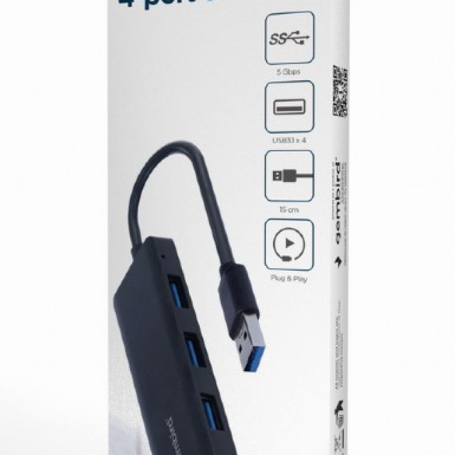 Gembird USB3.1 Hub UHB-U3P4-03, 4 ports, USB 3.1(Gen.1), Black