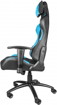 Игровое кресло Genesis Nitro 550 Black BlueКаждый опытный игрок знает, что его комфорт — одна из самых важных вещей, о которых он должен заботиться. Длительный, увлекательный игровой процесс может стать настоящим усилием, и по этой причине каждый геймер должен заботиться о здоровье своего тела.Первым шагом должно стать закрепление позвоночника, чего можно было бы легко достичь, инвестировав в хорошее, правильно очерченое игровое кресло. Natec Genesis Nitro550 — это кресло, которое обеспечит максимальный комфорт для каждого геймера, даже самого требовательного.Конструкция Nitro550 выполнена из высококачественного прочного металла. Шасси, изготовленные из этого материала, гарантируют высокую устойчивость к повреждениям и долгие годы эксплуатации. Кроме того, рама стула содержит газовый лифт класса 4, который способен выдерживать до 150 килограммов. Благодаря этим решениям, Nitro550 — отличный выбор для каждого геймера.Nitro550 характеризует сочетание высокого комфорта с множеством функций. Кресло имеет регулировку высоты сиденья в диапазоне 8-10 сантиметров, а также регулировку подлокотников, которая может быть наклонена влево или вправо. Еще одна интересная функциональность — возможность качаться на стуле, который в последнее время набирает популярность. Кроме того, Nitro550 имеет регулируемый угол наклона спинки, который будет по достоинству оценен среди геймеров, которым иногда необходим отдых или дремота во время продолжительного игрового процесса.Обивка сиденья наполнена высококачественной мягкой пеной, которая составляет 4 сантиметра в спинке и 7 сантиметров в сиденье. Кроме того, сиденье и спинка правильно профилированы для обеспечения максимального комфорта и поддержки спины геймера. Nitro550 покрыт матовым, прочным нейлоновым материалом в передней части и высококачественной эко-кожей сзади. Кроме того, есть две мягкие подушки — одна в качестве подголовника, а другая с регулируемыми ремнями для поддержки соответствующей части позвоночника и повышения комфорта.