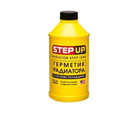 Стоп-течь для радиаторов SP9023быстро и эффективно ликвидирует протекания алюминиевых, медных и пластиковых радиаторов. Средство для герметизации не влияет на служебные характеристики охлаждающих жидкостей. Герметик безопасен для резиновых и пластмассовых патрубков, уплотнителей и прокладок.Герметизатор протекания«Стоп-течь» радиатора быстрого действия StepUp SP9023предотвращает появление утечек в дальнейшем при замене антифриза или тосола. Специальная алюминиевая композиция позволяет восстанавливать герметичность оболочки.Применение герметика:Стоп-течь заливают непосредственно в радиатор или расширительный бачок. Для этого сначала открывают пробку из радиатора и кран отопителя. Затем запускают двигатель. Содержимое банки встряхивают и заливают в радиатор. Дают поработать двигателю 10-20 минут на малых и средних оборотах.Главные особенности и преимущества:Обеспечивает герметичность жидкостной системы охлаждения в течение длительного времени. Содержит ингибитор коррозии. Средство совместим с любыми охлаждающими жидкостями.