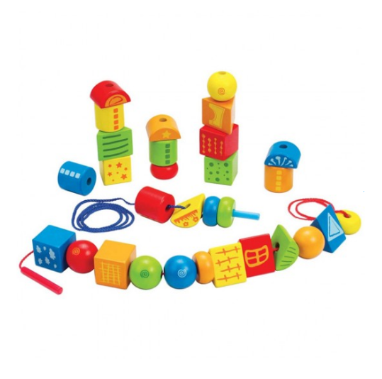 Hape E1019A Деревянный набор: Шнуровка Радужные геометрические формы