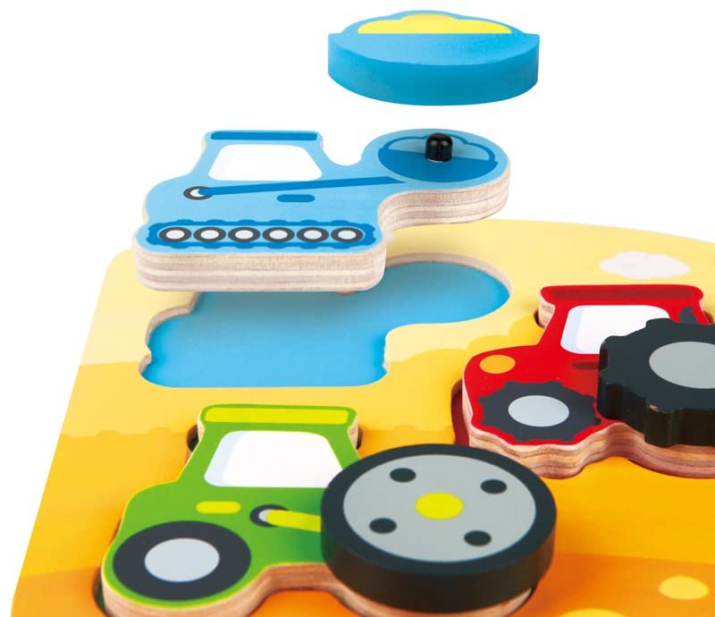 Динамичный взгляд на классическую головоломку Массивные изделия идеально подходят для маленьких рук Назовите и разместите все строительные машины в этой головоломке. Идеально подходит для младенцев и малышей Долговечная безопасная для детей краска и отделка.