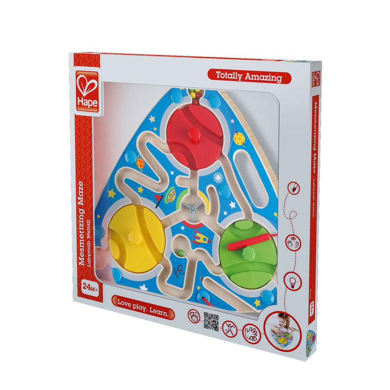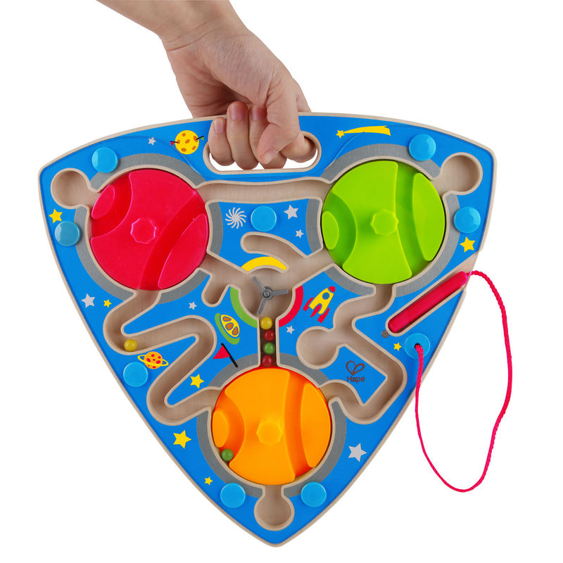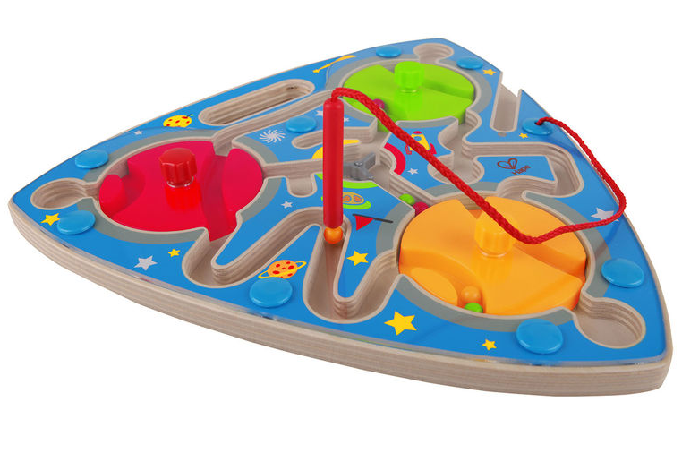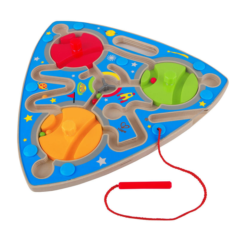 Игрушка изготовлена из натурального дерева и пластика. Лабиринт окрашен в яркие цвета, что обязательно привлечет внимание малыша. Внутри корпуса лабиринта есть много шариков раскрашенных в яркие цвета. Цель игры правильно передвигать шарики магнитной указкой по лабиринту до ячейки. Пластиковая, прозрачная панель не даст шарикам выпасть наружу. Магнитная указка связана с игрушкой веревкой, чтобы ребенок не потерял её. Включает в себя 14 деталей и рассчитан на детей от 24 месяцев и старше. Этот продукт удобен компактен и портативен, что делает его идеальным для развлечения детей в автомобиле, дома и на улице! Игрушки Hape творчески разработаны и экологичны. Все продукты встречаются и чаще всего превосходят самые строгие международные стандарты качества и безопасности, которые должны использоваться совместно с нынешними и будущими поколениями.