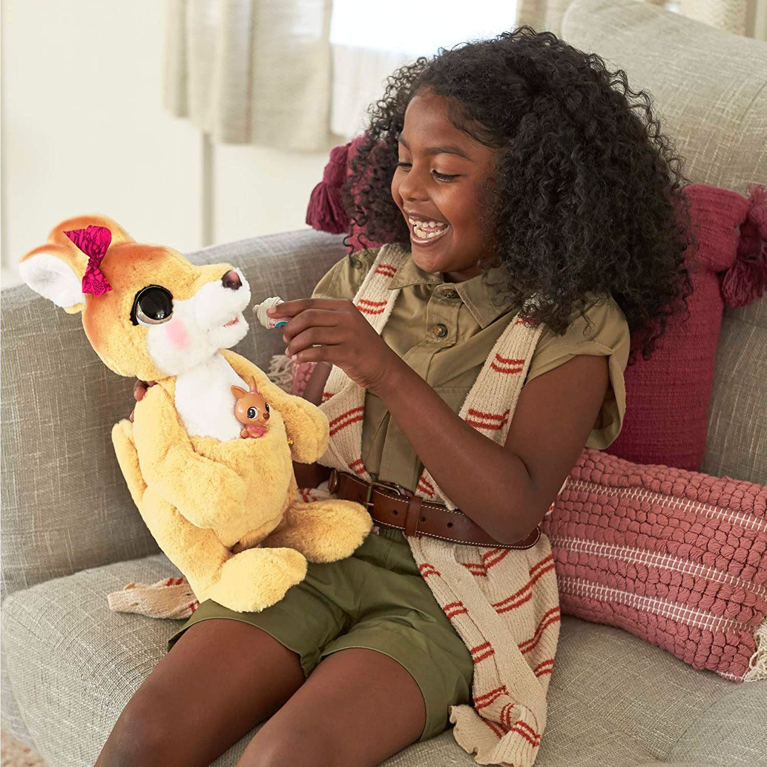 Ребёнок будет развивать мелкую моторику, фантазию, воображение, забавно и весело играть с кенгуру от бренда «FurReal Friends».
