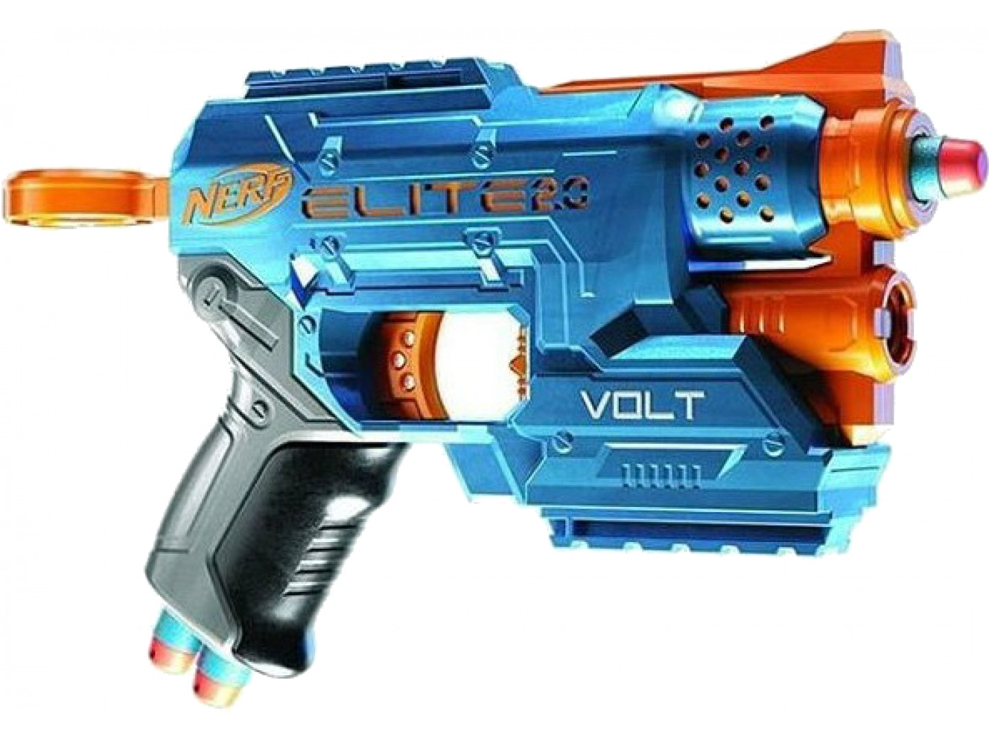 Это обновленная версия популярного бластера Nerf Firestrike, которая может похвастаться не только новым стильным дизайном, но и улучшенным характеристиками. Так, теперь бластер оснащен двумя тактическими планками для модификации — в верхней и нижней части. Вместо трех стрел в комплект теперь идут целых шесть. В рукояти Вольта имеются слоты для пары запасных стрел.