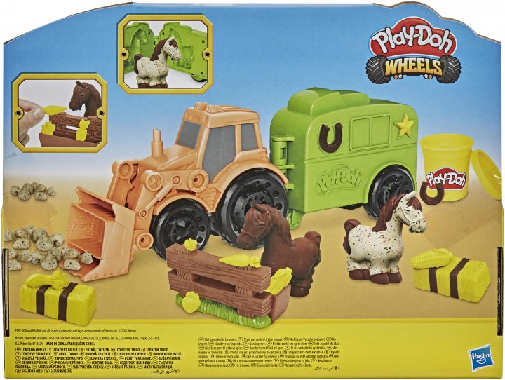 В комплекте: 1 трактор, 1 прицеп, 1 корыто, 3 баночки с массой для лепки