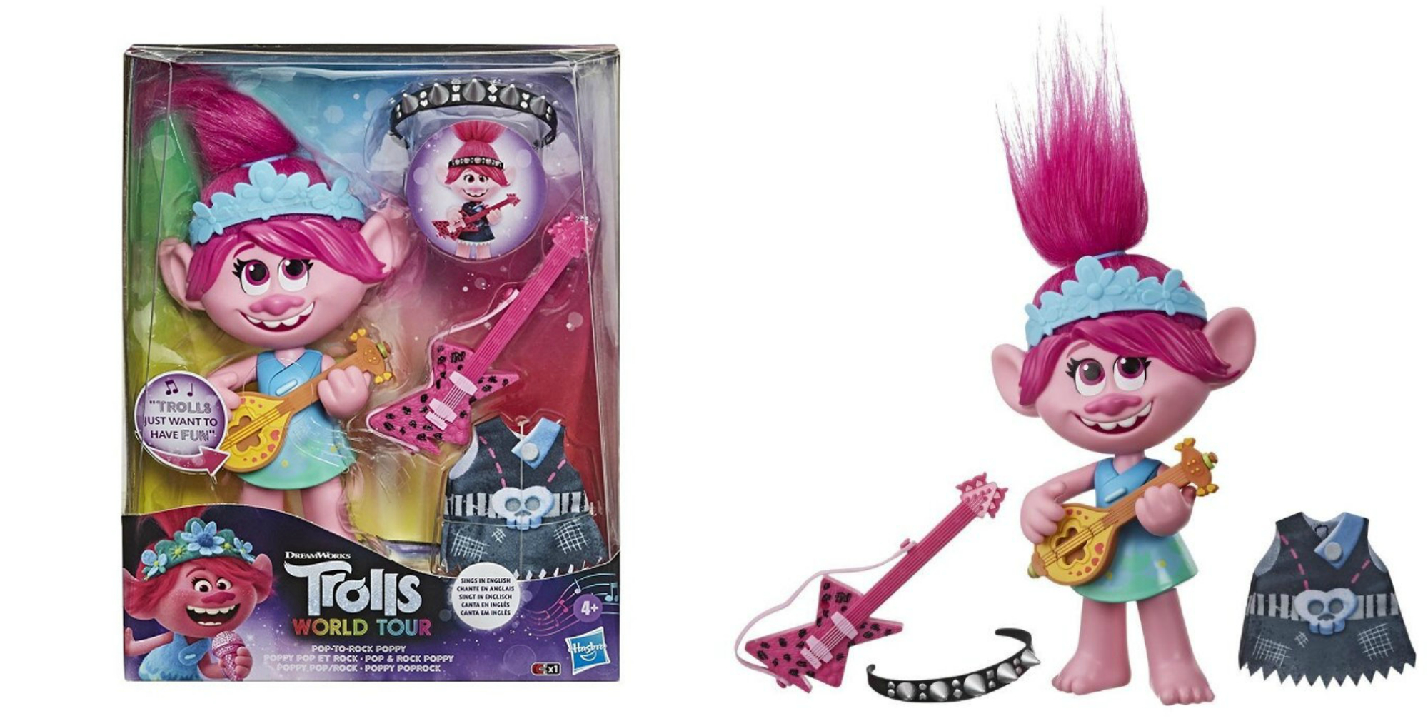 - Когда кукла держит укулеле, она поет поп-версию песни Trolls Just Want to Have Fun, но если дать ей электрогитару, она запоет эту песню в стиле хард-рок