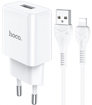 Зарядное устройство сетевое Hoco N9 + Lighting Cable WhiteHoco Wall Charger with Lightning Сable N9 USB 2.1A, White
