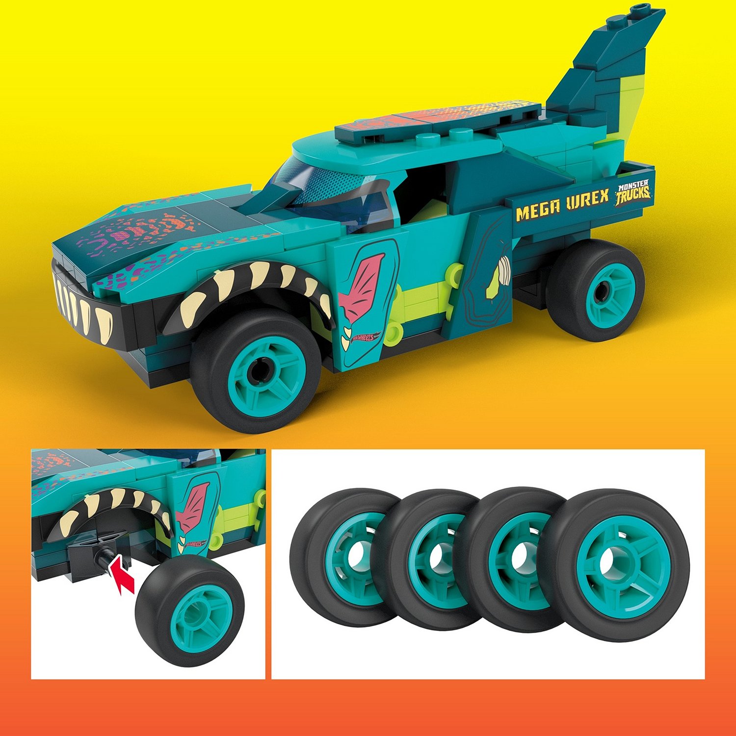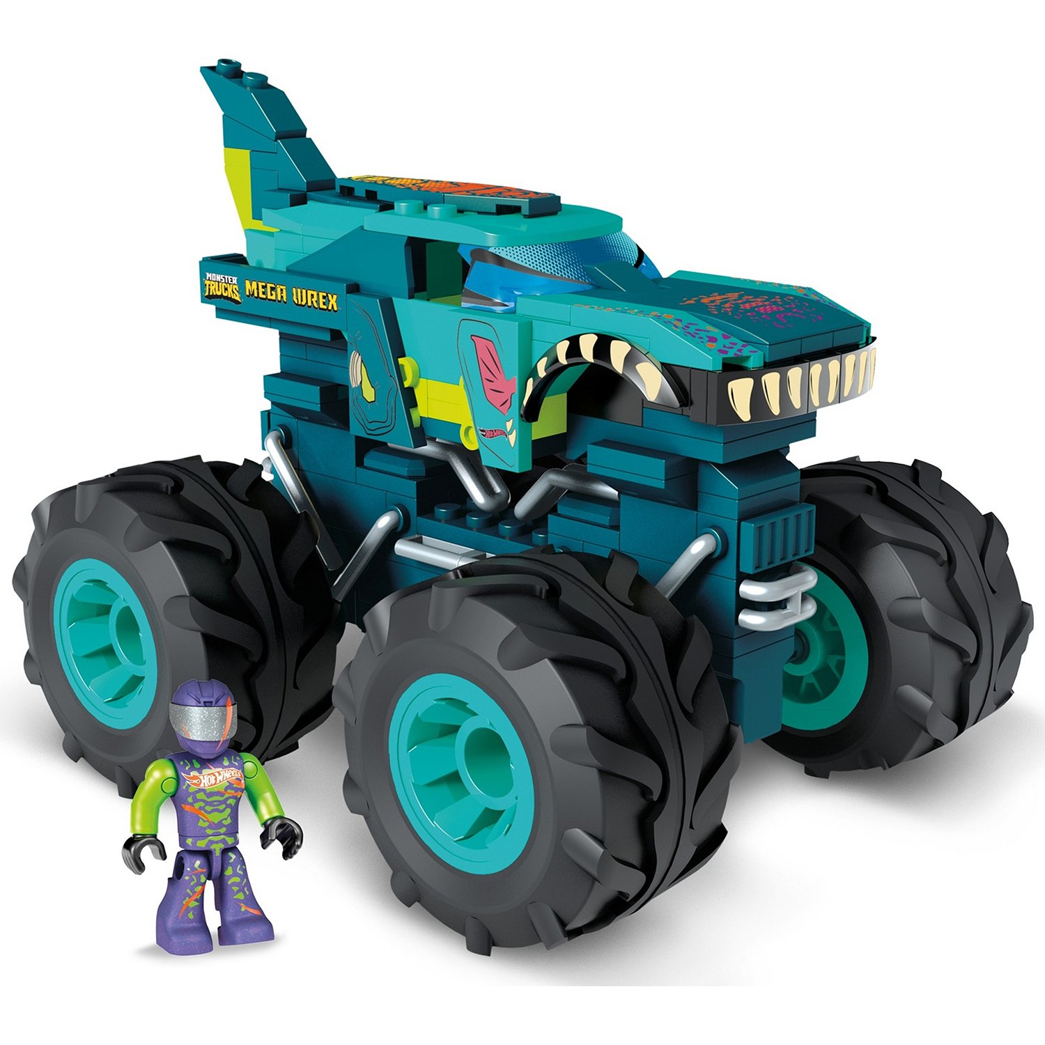 - В комплекте 187 деталей Mega Construx для сборки, включая дополнительные колеса, которые превращают монстр-трак в гоночную машинку