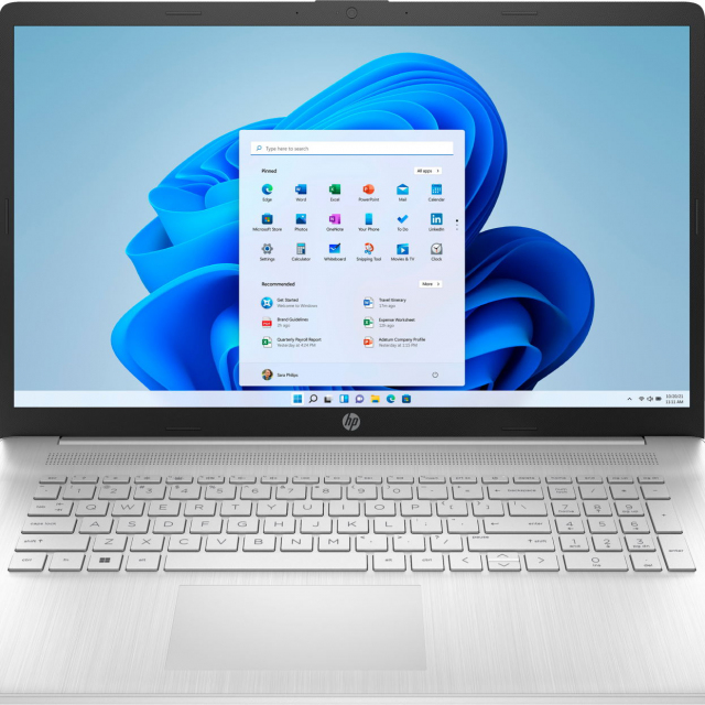 HP Laptop 17 Natural Silver (17-cn2044cii), 17.3” IPS FHD 300 nits (Intel Core i5-1235U 10xCore 3.3-4.4 GHz, 16GB (2x8) DDR4 RAM, 512GB PCIe NVMe SSD, Intel Iris Xe Graphics, no ODD, WiFi 5-AC/BT5.0, Type-C, 41Wh 3cell, 720p HD Webcam, Ru, FreeDOS, 2.08kg