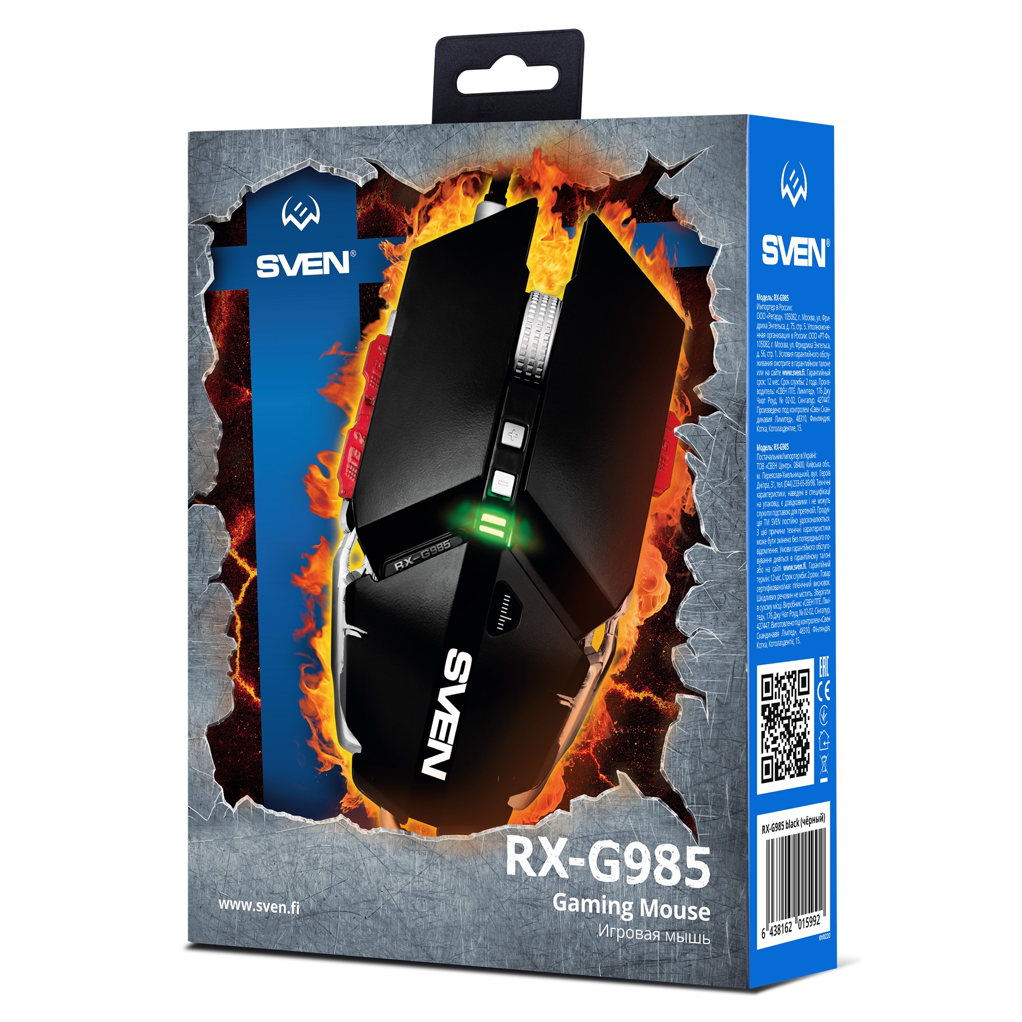 Игровая мышь SVEN RX-G985 / Gaming sensor Pixart 3050 / USB / 4000 dpi / Black