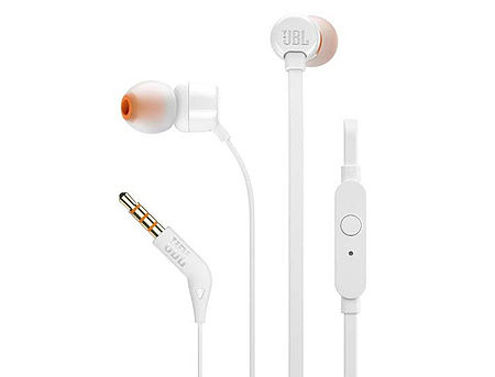 JBL T110 White In-Ear Headphones, 20Hz-20kHz, Microphone, Remote, Cable, JBLT110WHT