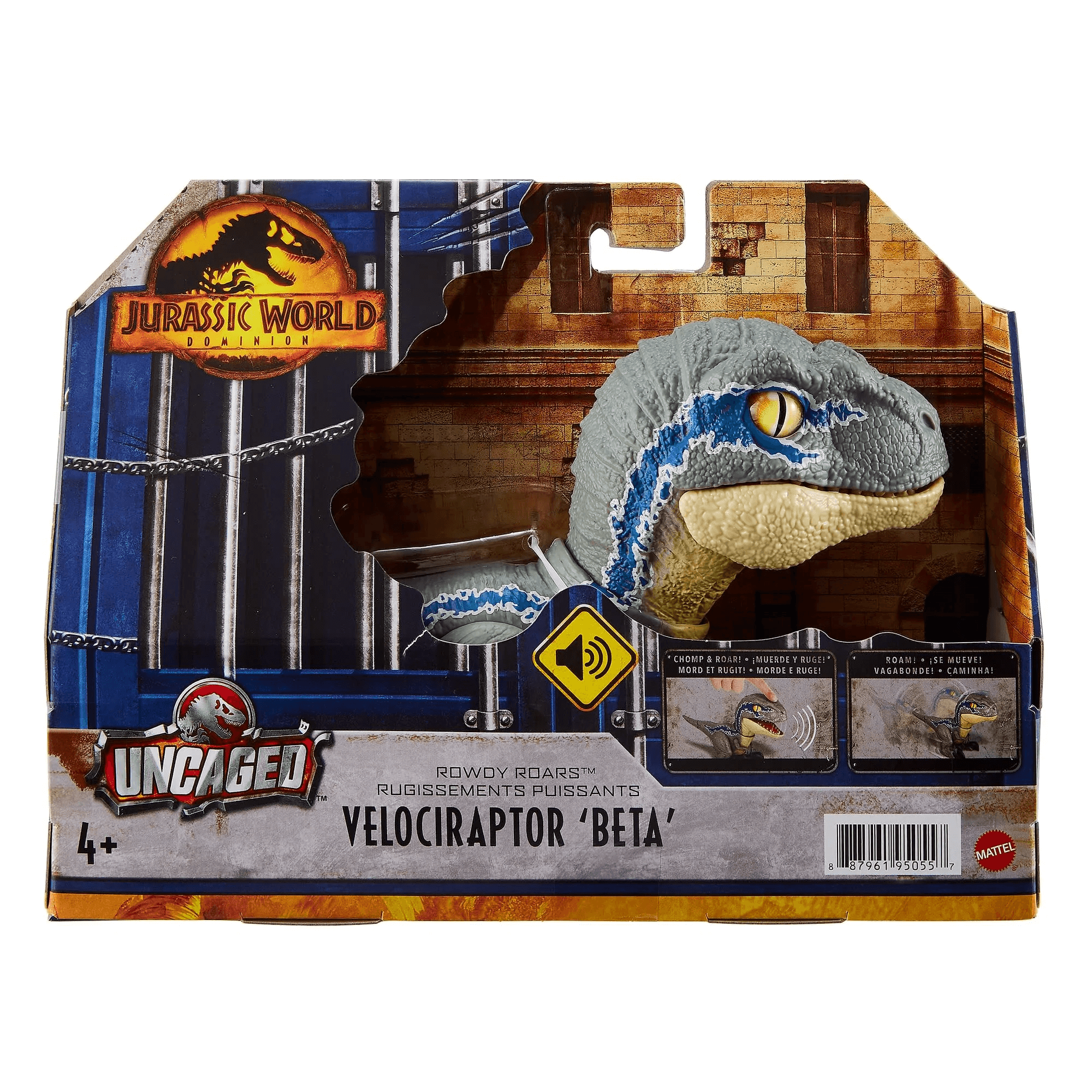 - Принесите домой дикие приключения Jurassic World Dominion и его взаимодействие с людьми и динозаврами с этой фигуркой Uncaged™ Rowdy Roars™ Velociraptor 'Beta'.