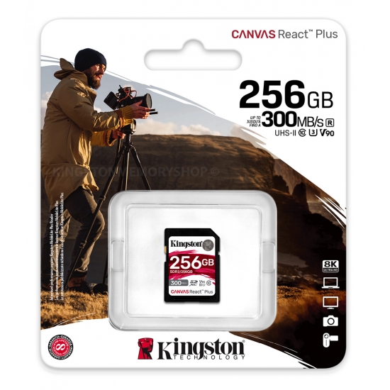 Карта памяти SD Kingston Canvas React Plus V90/ UHS-II/ 300MBps/ 256GB