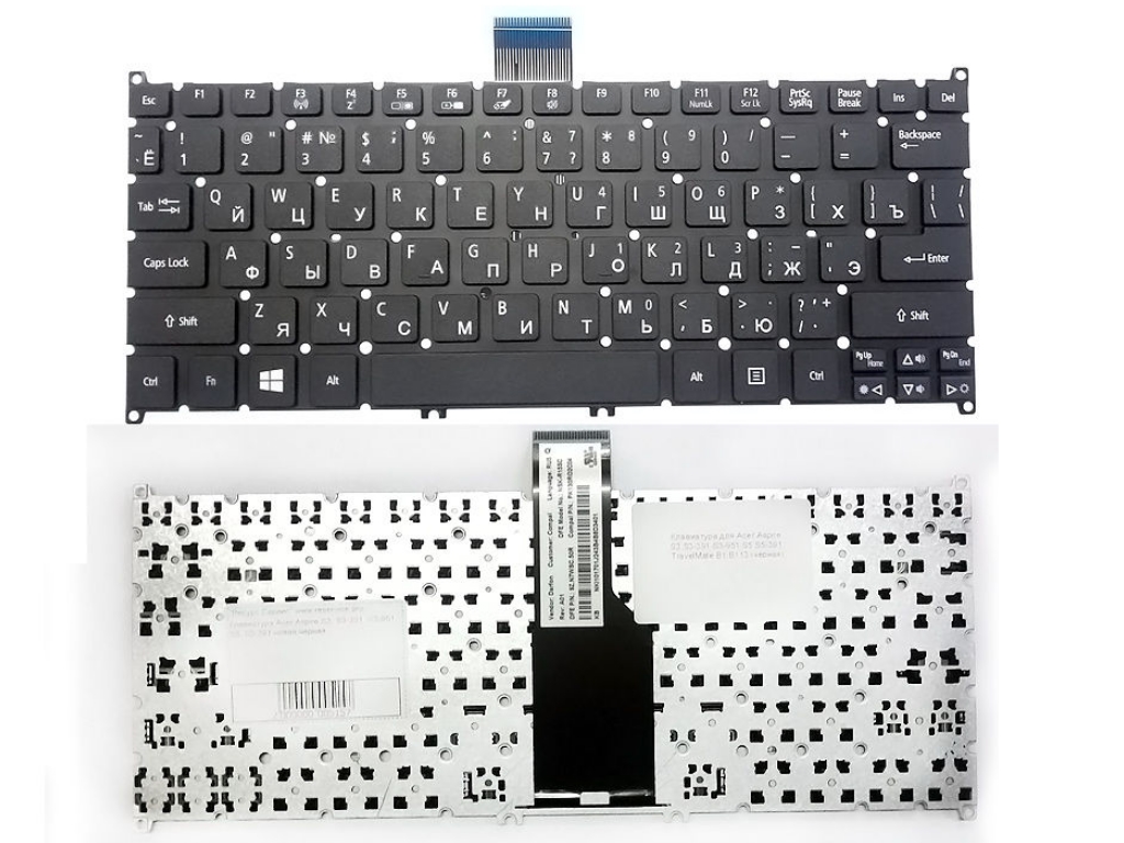 Keyboard Acer Aspire S3-391 S3-951 S5-391 S5-951 V5-121 V5-122 V5-123 V5-131 V5-132 V5-171 V3-371 V3-111 E3-111 One 725 756 w/o frame ENG/RU Black