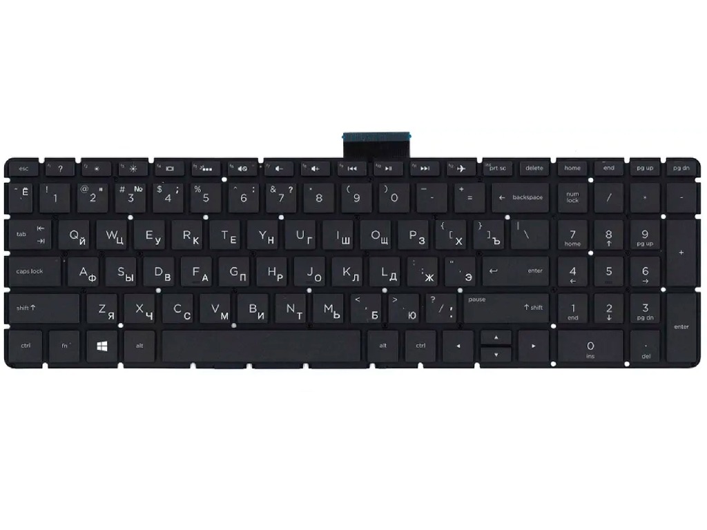 Keyboard HP ProBook 250 G6, 255 G6, 256 G6, 258 G6 w/Backlit w/o frame "ENTER"-small Right Angles ENG/RU Black