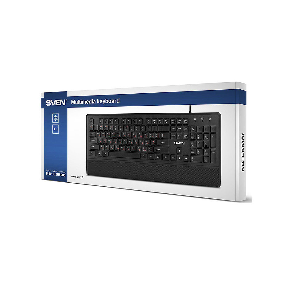 Клавиатура SVEN KB-E5500, Keyboard, 104 keys, 12 Fn-keys, Waterproof, Ergonomic Keyboard Rest, slim compact design, low-profile keys, Black