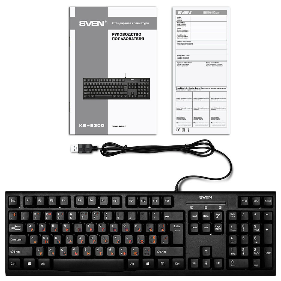 Клавиатура SVEN KB-S300, Black Keyboard, Waterproof design, 104 keys,