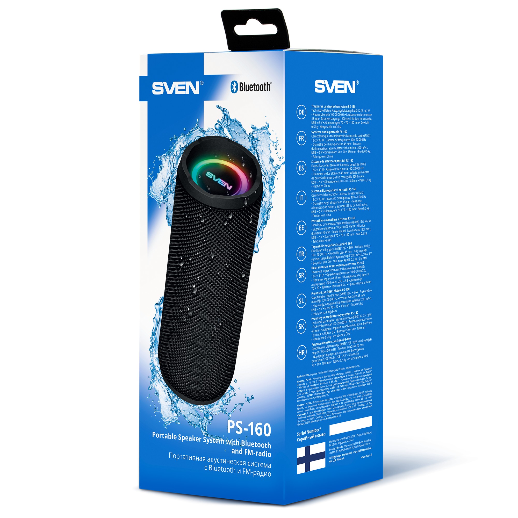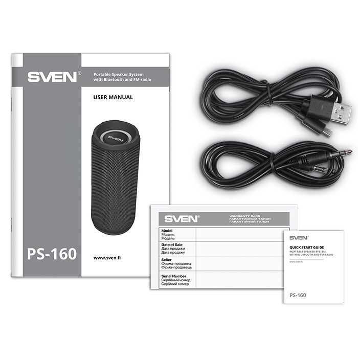 Колонка Портативная SVEN PS-160, Black / 12W / Bluetooth / FM / USB / microSD / 1200mA*h