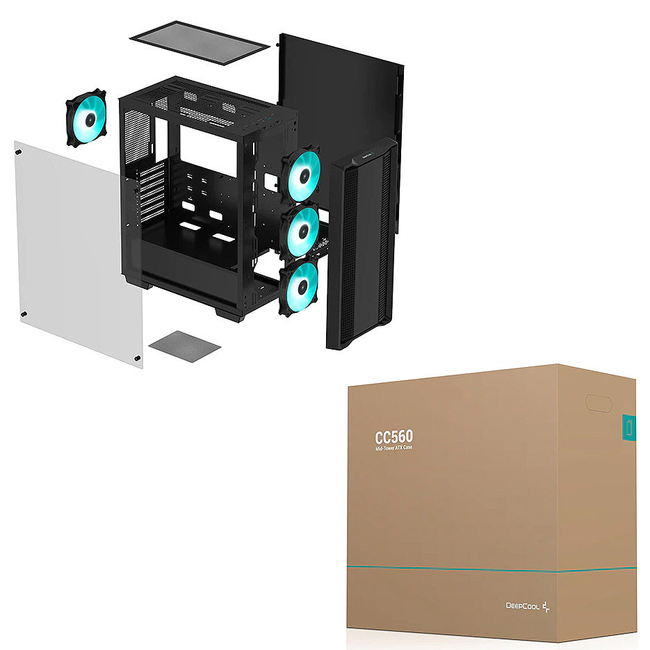 Корпус Case Middletower Deepcool CC560 WH ATX White, no PSU, Side panel Tempered Glass, 2xUSB3.,1xUSB2.0, Audio, Pre-Installed LED Fans: Front 3X120mm, Rear 1X140mm (carcasa/корпус)