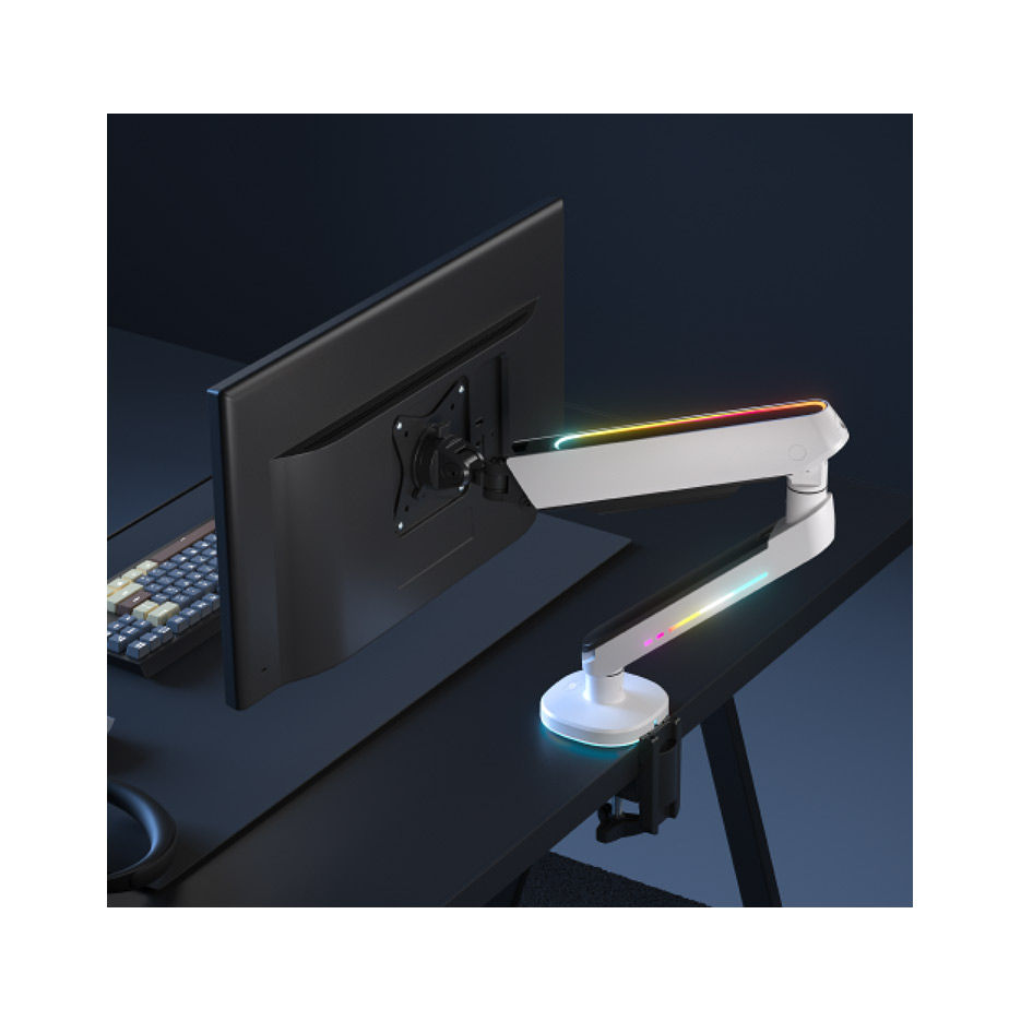 Крепление мониторов Brateck LDT54-C012L RGB Lighting Gaming Monitor Arm with built-in control, for 1 monitor, Clamp-on, 17"-32", Tilt Range +40° ~ -40°; Swivel Range +90° ~ -90°; Screeen Rotation 360°, VESA: 75x75, 100x100, Arm Extend: 477mm, Weight Capac