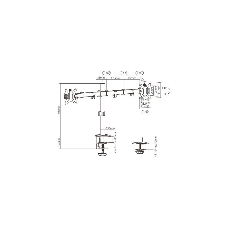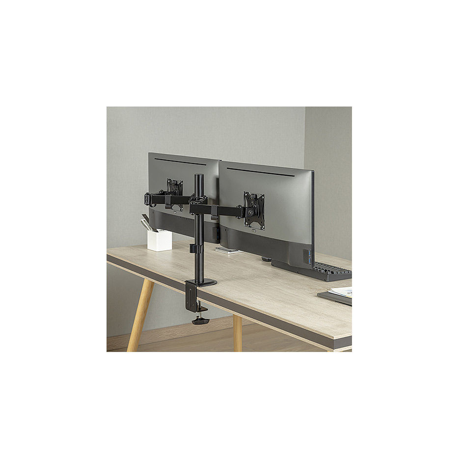 Крепление мониторов Brateck LDT66-C024 Dual Monitors Steel Articulating Monitor Mount, for 2 monitors, Clamp-on, 17"-32", Tilt Range +45° ~ -45°; Swivel Range +90° ~ -90°; Screeen Rotation 360°, VESA: 75x75, 100x100, Arm Extend: 376mm, Weight Capacity per