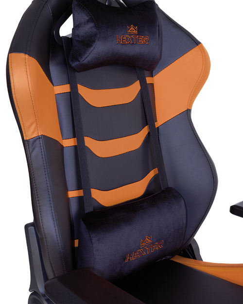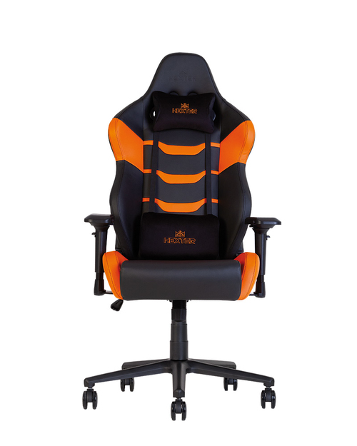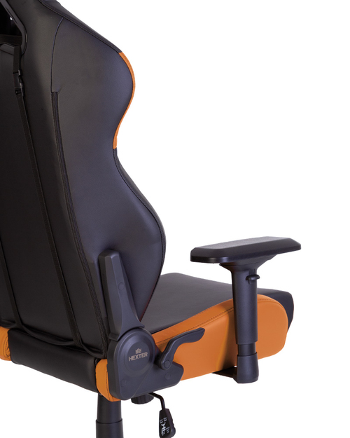 Кресло HEXTER RC (R4D Tilt MB70 ECO/02 черный/оранжевый) - серия передовых геймерских кресел от компании NowyStyl. Усиленные 4D-подлокотники, стальная крестовина, литая спинка и сиденье.Внутри спинки и сиденья кресла – стальная рама и цельнолитой пенополиуретан, который широко применяют в автомобильной промышленности. Удобство кресла также обеспечивают эластичные ремни, которые крепятся к металлической раме кресла, обеспечивая сиденью дополнительную мягкость.В креслах Hexter используется газлифт 4 класса, который выдерживает вертикальную нагрузку в 150 кг.Обивка кресла – Prime PU экокожа. В кресле установлены классический механизм качания Tilt с возможностью регулировки усилия при качании и реклайнинг 90-155 градусов – механизм независимого откидывания спинки. Кресло соответствует стандартам BIFMA.BIFMA - американский стандарт работы и безопасности, разработанный Техническим Комитетом Bifma (США). Применяется в оценке эксплуатации офисных кресел для персонала и руководителей, и служит единой базой стандартизации по безопасности, долговечности и рабочих функций тестируемого изделия. Стандарт присваивается в случае успешного прохождения испытаний на вытяжение и гибкость, максимальное давление, ударопрочность, а так же на устойчивость к истиранию шарниров. Обязательным тестом является проверка на максимальную устойчивость к давлению и изгибанию подлокотников, растяжению спинки, функционированию роликов.